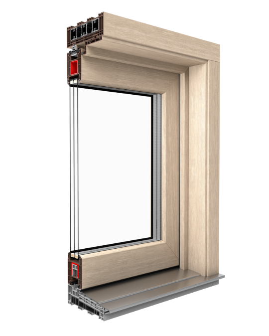 Rahmenverstärkung aus hochwertigen Aluminiumprofilen mit thermischer Isolation, volle Flügelverstärkung von 2mm oben und Seiten und unten eine U-Profilförmige Verstärkung von 3mm